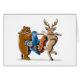 Satisfied deer and grinning bear carry a hunter in disbelief on a wooden pole between them! Funny anti-hunting t-shirts and gifts for animal lovers and those against hunting animals for sport!