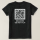 A shirt for those who do not want to be filmed or scanned. The QR code currently leads to an annoying website, but can be personalized to any site you want. The text can also be personalized. The design is the same on front and back. A likely deterrent against anyone seeking to film you when you would prefer they don't, as they won't want to risk harming their device by pointing it at the QR. It is not recommended that you use this t-shirt to break any laws.