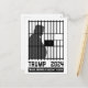 Anti Trump postcard for political humour junkies who want justice by seeing felon Trump in prison. Mug shots are the first step! Funny graphic of a portly slouching behind bars Trump in Federal prison. Make America decent again in 2024. No felons for president!
