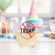 Trump with a red circle and an X over his name. Use this Anti Donald Trump wine glass when you are drinking to forget that this man is our president. Americans who hate Trump will like this political gift.