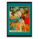 Great vintage poster for Antibes France featuring a beautiful lady dressed in art deco fashion with a dog looking out over the beach in Antibes, France.