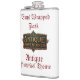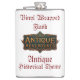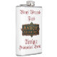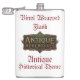 The flask itself is fine. It’s a cheap flask, obviously bought in bulk, however am prepared to overlook that. Given that it is a personalized item, I would have liked to have seen gift boxing instead of the generic packaging. Terrible printing, and/or quality. It’s a cheap, tacky vinyl. It is not cut straight and is also applied in a way that it is overhanging the bottom, causing the glue to catch on items and it will eventually roll and tear, damaging the wrap.