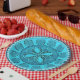 Antique Aqua Glass Romantic Floral Faux China Paper Plate