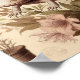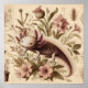 Antique Axolotl Drawing With Aquatic Florals Label Poster