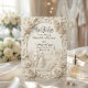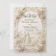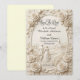 Announce your formal union with the timeless elegance of a sculpted bas-relief effect. A monochromatic ivory masterpiece featuring a romantic church scene.This design mimics the intricate artistry of a classical bas-relief sculpture, rendered in soft shades of ivory, cream, and off-white. The layout features a central oval vignette depicting a formally dressed couple walking along a cobblestone path toward a traditional country church with a steeple. This scenic focal point is surrounded by a highly detailed, faux-embossed border of blooming rosebuds and lush foliage, utilizing simulated light and shadow to create a convincing 3D architectural appearance. The typography is presented in a formal serif script, integrating seamlessly with the stone-carved aesthetic.This is a flat printed image with a faux relief texture effect, not actual raised material or indented paper.