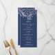 Something old and something new...Antique inspired wedding menus feature different typography with an elaborate floral ornament in grey adorned on top over a navy blue background. Text details are in grey, which are fully customisable.