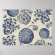Antique Blue Toile Botanical Flower Print Floral