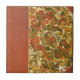 Antique leather bound book cover binding, with ornate spiral swirl pattern.