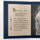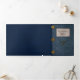 Fairy tale style wedding invitation done in a blue antique book looking tri fold. The outside front is done in a an old antique blue book cover look, with graphics of gold decorations. The inside is done in antique looking paper. The inside middle section has a custom photo slot ready for your picture. Personalise all the text fields for your special wedding announcement.