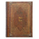 The cover of this notebook looks like an old book that's made from leather with golden letters that you can customise with your text (or just delete)