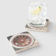 The coasters are gorgeous, a quality feel and heavy weight. They look like a precious archeological find. A rustic stone juxtaposed with a modern floral black and white print. I like the way the print goes slightly imperfect on the cut stone edges giving them a kind-of natural beauty.