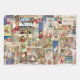 Antique Christmas Holiday Greeting Cards Pattern Wrapping Paper Sheet
