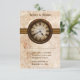 This Antique Clock Wedding Response Card features a vintage timepiece prominently centred on top of a metal ball chain and sleek rusty brown striped border. The distressed look of the grungy paper texture background completes the antiqued feel of this unique RSVP card. This offbeat wedding response card is perfect for a vintage or steampunk inspired wedding. Easy to customise, simply add your wedding details in the text fields provided. Click on "Customise It" to find additional options to personalise this design.
