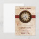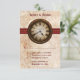 This Antique Clock Wedding Response Card features a vintage timepiece prominently centred on top of a metal ball chain and sleek dark red striped border. The distressed look of the grungy paper texture background completes the antiqued feel of this unique RSVP card. This offbeat wedding response card is perfect for a vintage or steampunk inspired wedding. Easy to customise, simply add your wedding details in the text fields provided. Click on "Customise It" to find additional options to personalise this design.