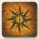 An antique compass rose etching is on a unique background, featuring an antique map of England overlaid on an antique book cover.