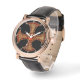 I loved the ability of designing the watch face, I chose the men’s style as I like a “big watch look”, the leather strap is good quality. Easy to read watch with illuminated hands, great for 24/7 use. I am very pleased with the end result of my design. I have no hesitation in recommending the individualisation of an item. The customisation tools are easy to utilise, you won’t be disappointed. Definitely 5 stars