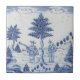 The original of this blue and white Delft Tile is in a German palace, installed in the 1800's. You will receive a glossy ceramic tile suitable for indoor use only. The design is of two "oriental" musicians. Ideal for a fireplace surround, kitchen backsplash, or bathroom. See our complete collection of Delft reproduction tiles. Recommended: Order one as a sample before placing a large order or buying solid color tile to match.