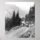 Old photo of Detroit Electric auto going from Seattle to Mt. Rainier. One of the first electric cars. Early 1900s photograph taken on mountain road in Washington State, 1919.