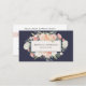 Elegant floral appointment reminder cards in blush and navy blue feature your name and/or business name framed by a border of lush watercolor flowers in blush pink, sage green, peach and cream, on a midnight blue background. Add your cancellation policy, custom heading, and contact information to the back. Includes space to write in your customer's next appointment date and time.