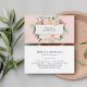 Elegant floral business cards feature your name and/or business name framed by a border of lush watercolor flowers in blush pink, sage green, peach and cream, on a blush pink background. Add your contact information to the reverse side using the template fields provided, or use the Customise function for a completely custom layout.