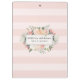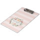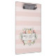 Elegant floral clipboard features your name and/or business name framed by a border of lush watercolor flowers in blush pink, sage green, peach and cream, on a background of tone on tone pastel blush pink stripes. Matching business cards and accessories are available below or in our shop.