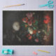 Historic Dutch floral oil painting by Jan Davidsz de Heem ca 1660 with french script and subtle damask on aged distressed background decoupage paper.