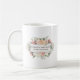 Elegant floral logo mug design features your name and/or business name framed by a border of lush watercolor flowers in blush pink, sage green, peach and cream.
