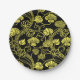 Antique Floral Pattern Black and Yellow Paper Plate