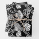 Antique Floral Pattern Black on White Wrapping Paper Sheet