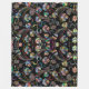 Antique Floral Pattern Multi Colour on Black Fleece Blanket