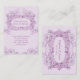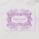 An antique-inspired frame is the focal point to frame the message on this lovely lilac reception card that is reminiscent of the Victorian-era. The preliminary reception information is framed at the bottom by soft flowers. The frame is repeated to highlight the couple's names and event date on the reverse. Available in alternate colours with matching products.