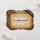 Antique Getting Hitched Wedding Invitations with a distressed brown background with faded flourish swirls around the edges and a printed ribbon on one corner. The design has a typography style look, with different font styles and sizes, giving it a modern look, yet antique vintage style. The wedding invitation wording can be changed, but currently says "You are cordially invited to come celebrate as {Bride} and {Groom} are getting hitched..."These wedding invitation are perfect for anyone looking for a vintage antique distressed look. Choose from a variety of die cut shapes and paper types.