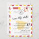 Save the Date - Antique Faded Airmail Letter Travel Design for your Destination Wedding to Madrid Spain. Map of Spain with a heart in the location of Puebla de Sanabria. Colours are in Yellow Gold and Red, same colours of the Spanish Flag. For enquiries about custom design changes by the independent designer please email paula@labellarue.com BEFORE you customise or place an order.