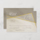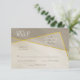 This simple, modern geometric style wedding RSVP card features an antique grey colour theme with calligraphic elements, asymmetric gold frame accents, and marble texture appearance - by katz_d_zynes