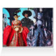 Expressive, whimsical elegant ancient Venetian puppets from !700 , vibrant gorgeous red blue costumes, colourful ,artistic Venetian masks with peacock feathers and gold purple floral fantasy, Original Digital Collage and Graphic Design by Bulgan Lumini - Baldesign3d (c)