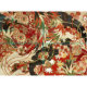 ANTIQUE JAPANESE FLOWERS Red Green Black Floral Fabric