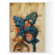 Elegant monogram, weird baroque tournament helmet with gorgeous.red blue feathers and old brown parchment effects with grunge.