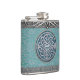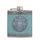 Antique Lace and Silver Decor Celtic Knot Flask. Metallic Metal Blue, Green and Silver Celtic Knot on a vintage look aqua antique lace pattern with metallic silver trim. Share the festive spirits with your favourite people in true Irish style with this Liquid Courage flask.