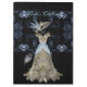 Fractal render manipulation and digital painting work. Silhouette of a victorian woman in a lace dress and hat with blue feather and bow accents with a matching parasol. Background is black with lacy blue accents. Just change the text or click on the "Customise it!" button for more design options. Artwork by Karlajkitty