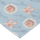 Set your table with this beautiful vintage style design. Antique lettering on a faded blue background sets the stage for this pink rose bouquet on an old fashioned lace doily. Pink and white toile bows complete the pattern. Perfect for your next tea party!