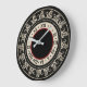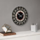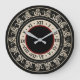 This antique looking design features black Mediaeval-looking scrollwork with Roman numerals. The vintage looking design is predominately black and ecru, with a thin ring of burgundy around the centre of the clock face.