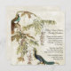 Elegant antique look custom wedding invitation. Lovely old meets new, with antique Japanese artwork of graceful hanging wisteria as the back drop for our colourful peacock and pea hen. Black script text is fully customisable to suit your needs.