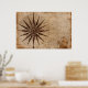 Antique nautical compass map poster