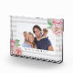 Create a sweet keepsake with our chic floral photo block, featuring your favourite horizontal or landscape orientated photo framed by a pale tone on tone grey stripes and accented with clusters of blush pink watercolor peony flowers and sage green leaves. Add your custom message using the field provided; we love it with "We Love You Mum" and the year for a unique Mother's Day, birthday or new mum gift.