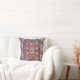 This wonderful design originates from an antique Persian Quahqai Oriental rug, circa 1870. The original rug was handmade in southwest Persia as a bagface. Bagfaces, also known as saddlebags, had two decorated pouches and the smaller ones were usually used on donkeys. The centre eight-pointed medallion colours are rose red, pleasing blues, light brown, and white. The field has small flowers and white botehs that may represent leaves, bushes, or pine cones. This pillow will add a beautiful splash of colour.