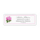 Make sending your mail much easier with this personalized return address label featuring custom address text and an antique illustration of a pink hydrangea flower bloom and stem. The classic charcoal text on white can be modified to any color or font combination using the blue edit button function.