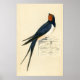 Vintage print of a Swallow. The Barn Swallow (Hirundo rustica) is the most widespread species of swallow in the world.