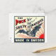 Antique Puck Riding Bat Swedish Matchbox Label Postcard