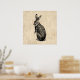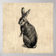 Antique Rabbit Illustration Bunny Art with Script Poster