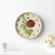 This beautiful clock design shows a vintage red rose graphic on a distressed, parchment coloured background that has white - cream polka dots. It's an elegant design that will look pretty in your home. Perfect for anyone who loves Victorian flowers. The clock numbers are black and in a retro style font.
